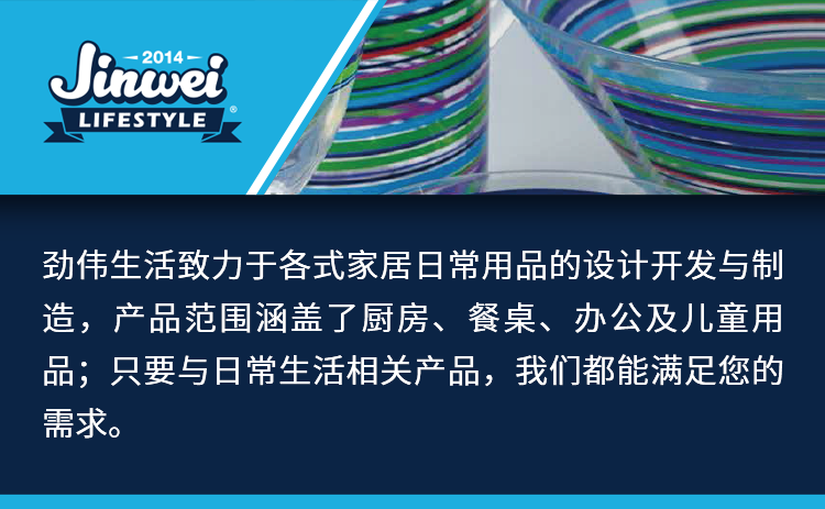 勁偉生活致力于各式家居日常用品的設計開發與制造,產品范圍涵蓋了廚房、餐桌、辦公及兒童用品;只要與日常生活相關產品,我們都能滿足您的需求。